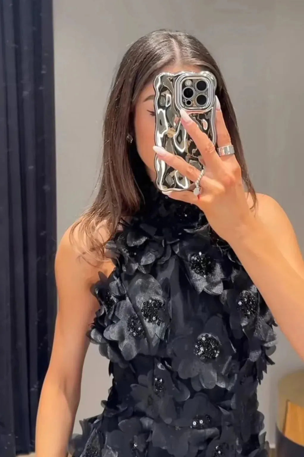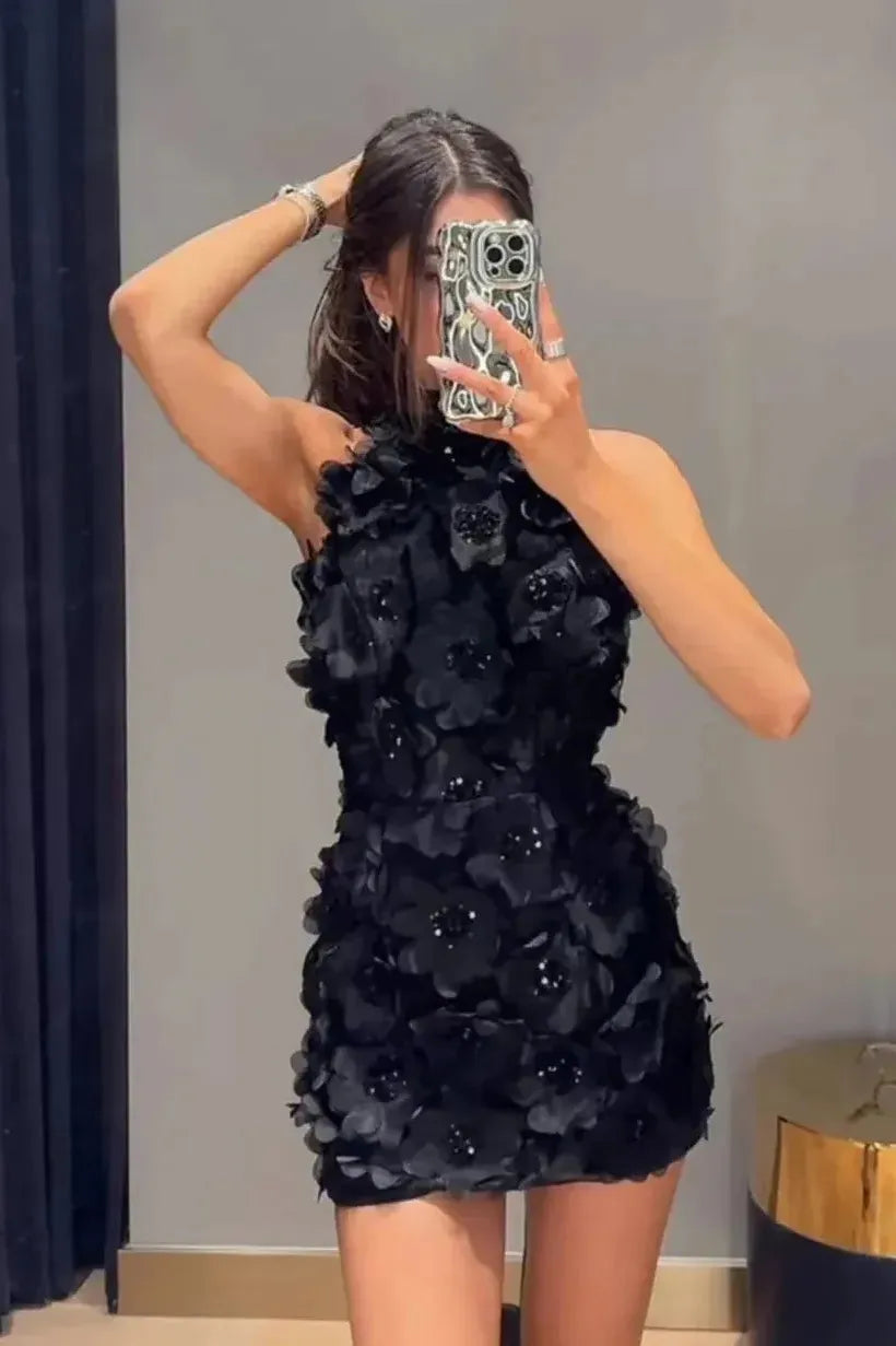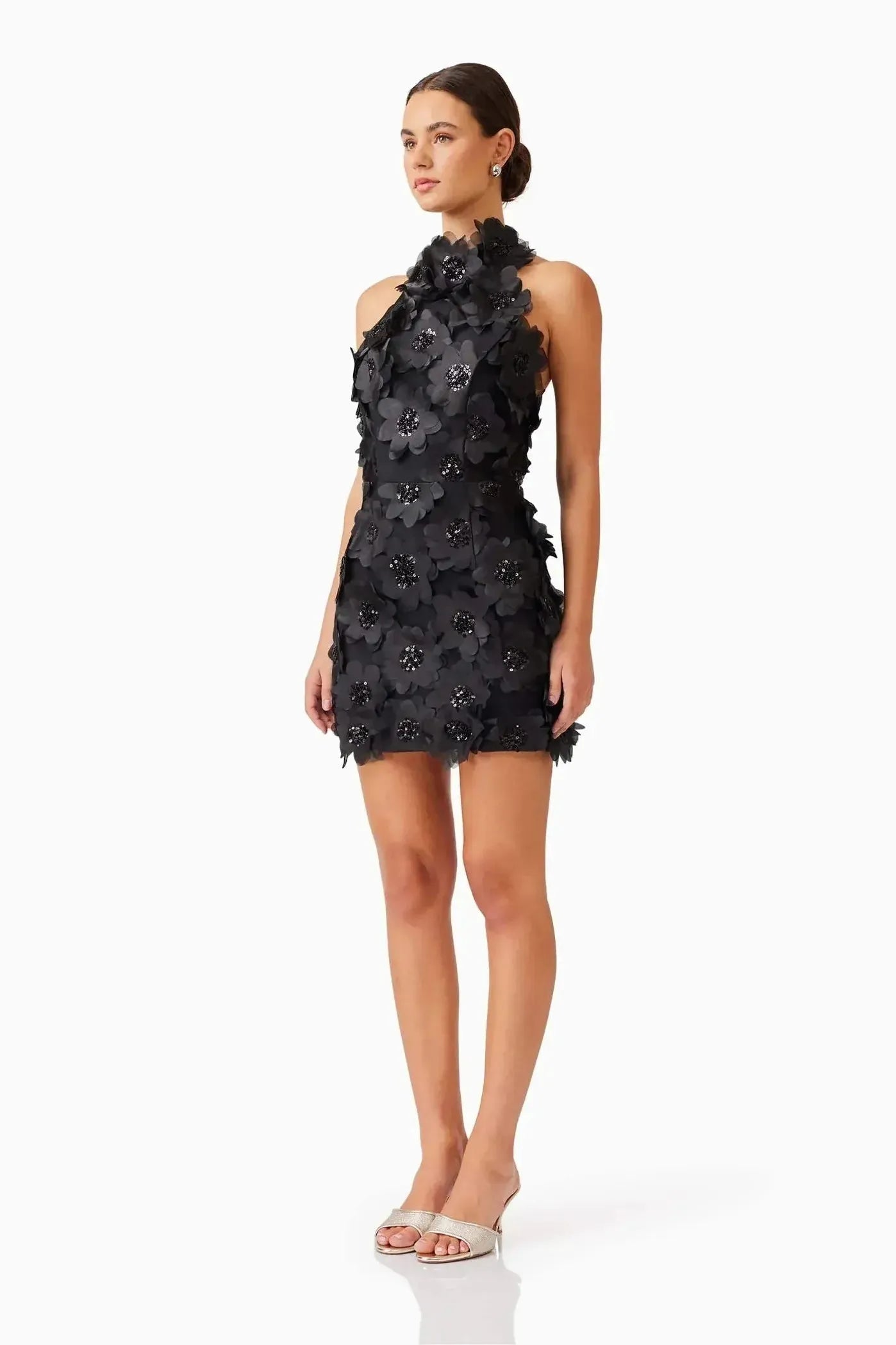 Step into timeless elegance with the Cherry Blossom Mini Dress in Black, a stunning party dress designed to turn heads. Crafted from intricate 3D floral mesh, this dress adds texture, dimension, and a touch of romantic charm.