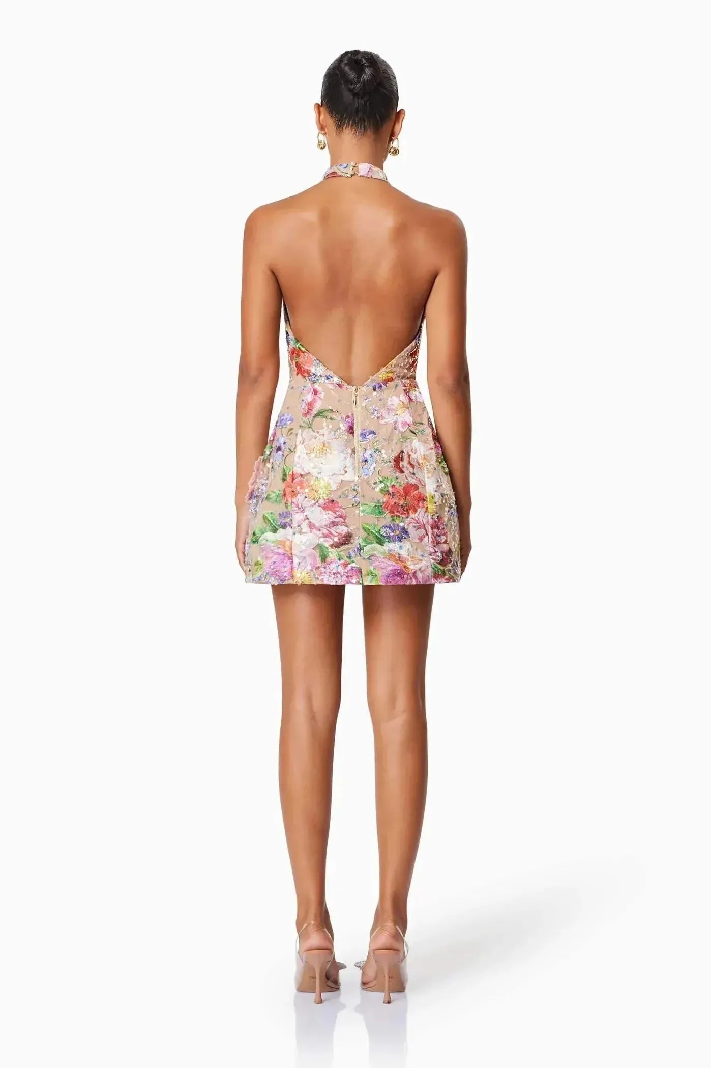 Turn heads at any occasion with this Event & Partywear Mini Dress, designed for unforgettable nights out. Featuring a high neckline that exudes sophistication, the dress contrasts beautifully with a daring backless design. The tulip-shaped mini skirt creates a flattering, voluminous silhouette that enhances your figure while maintaining effortless elegance.